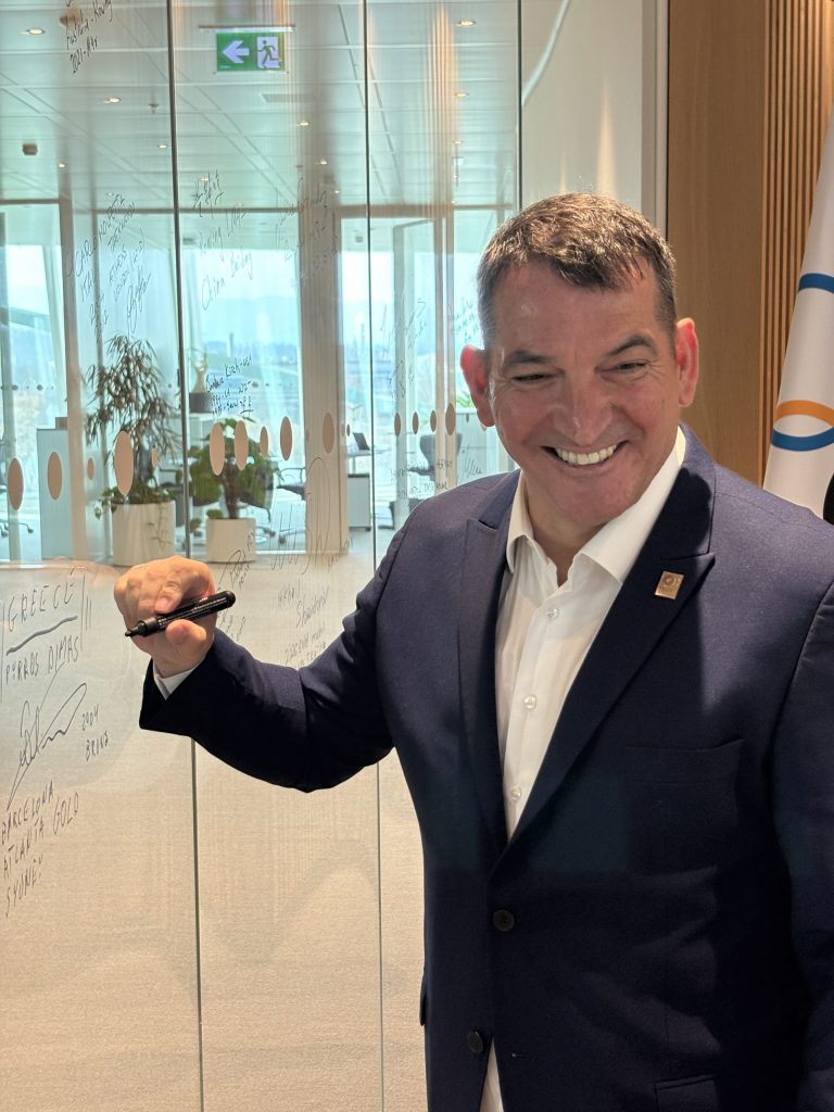 On the ceremony at the IOC Headquarters in Lausanne, Dimas was happy to add his name to a Wall of many legends in Sport. “What a nice feeling to share this space with so many other champions and Olympians! Each one of them is an example of determination, passion and devotion to his/her respective sport. It was also my case and I am very honoured to have my name in this so prestigious Wall,” concluded the Greek legend, who had a special witness at the ceremony in Lausanne: his 16-year-old son Nicolas.
